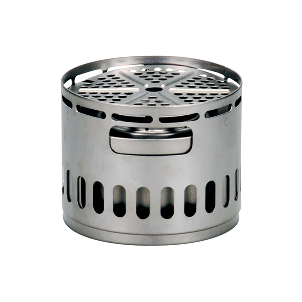 Multi-fuel versatility- wood, solid fuel, or alcohol. Includes a pot stand and protection from the wind.