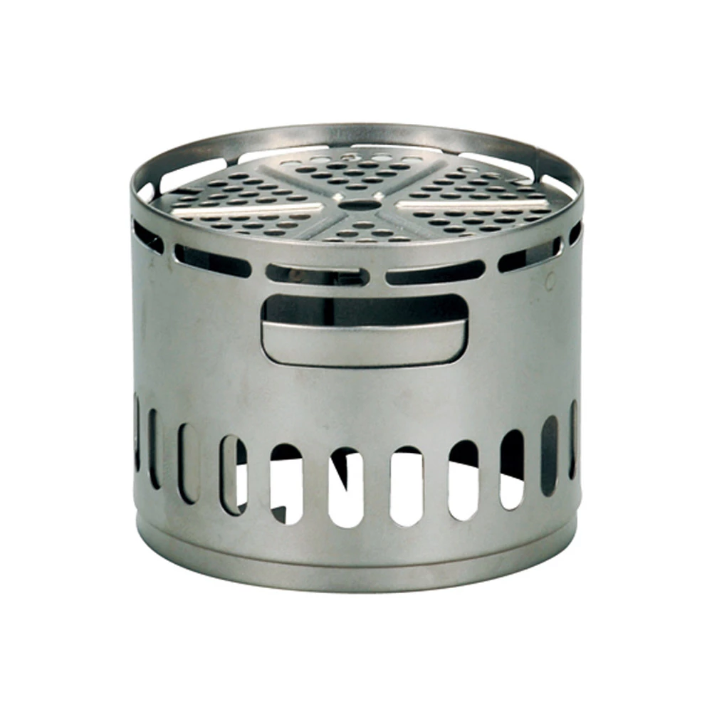 The Ti DX Stand is designed to be used in a number of ways: as a lightweight, compact wood-burning stove, in conjunction with Evernew’s Ti Alcohol Stove (sold separately [EBY254]) or with hexamine fuel tablets (e.g. Esbit heat tablets).