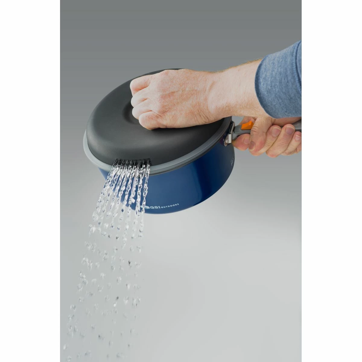Crushproof, heat-resistant strainer lid and silicone ring will not deform in packs and works with either the pot or the frypan.