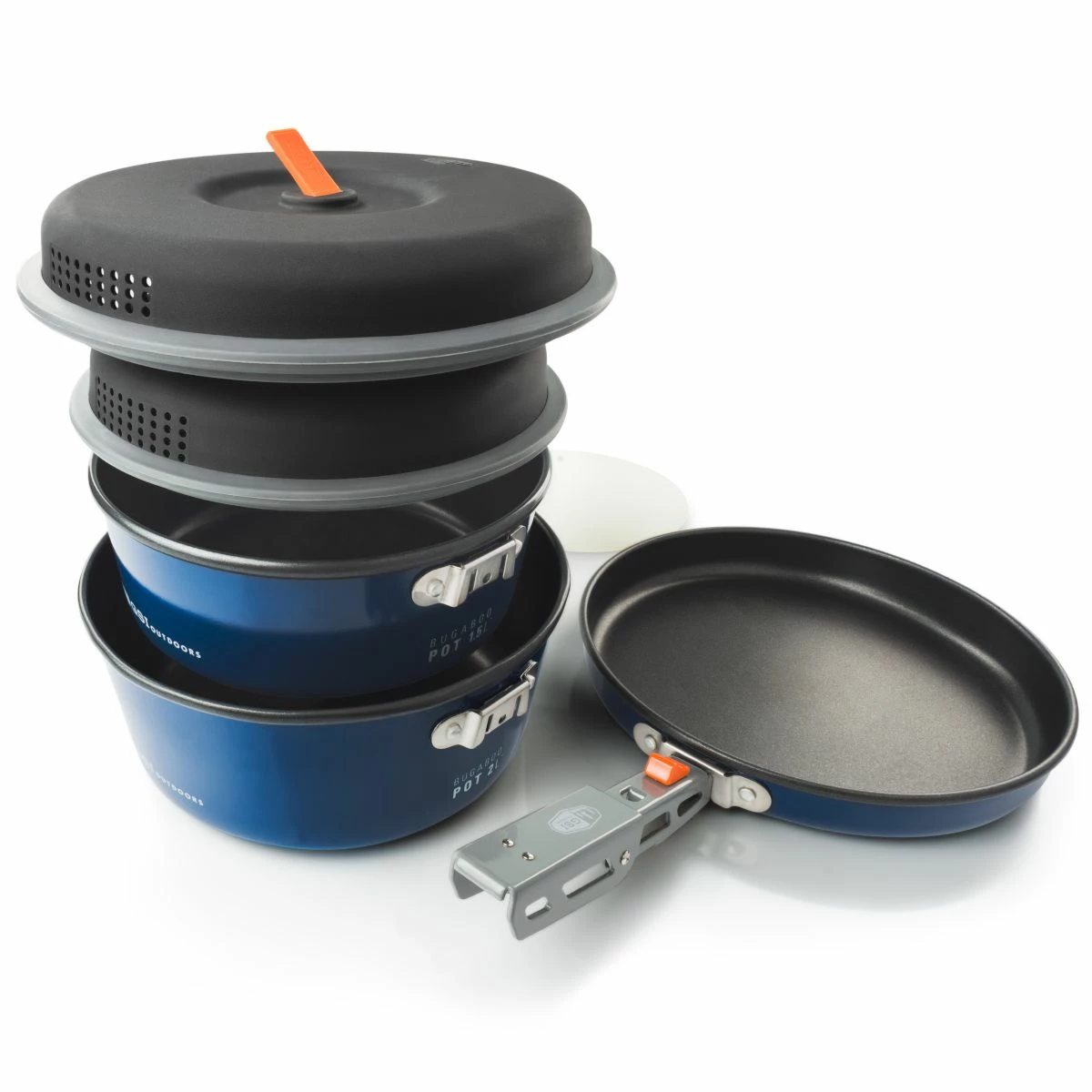 Included cutting board is ideal for a variety of prep duties and isolates the pots to protect the non-stick surface and prevent clattering.