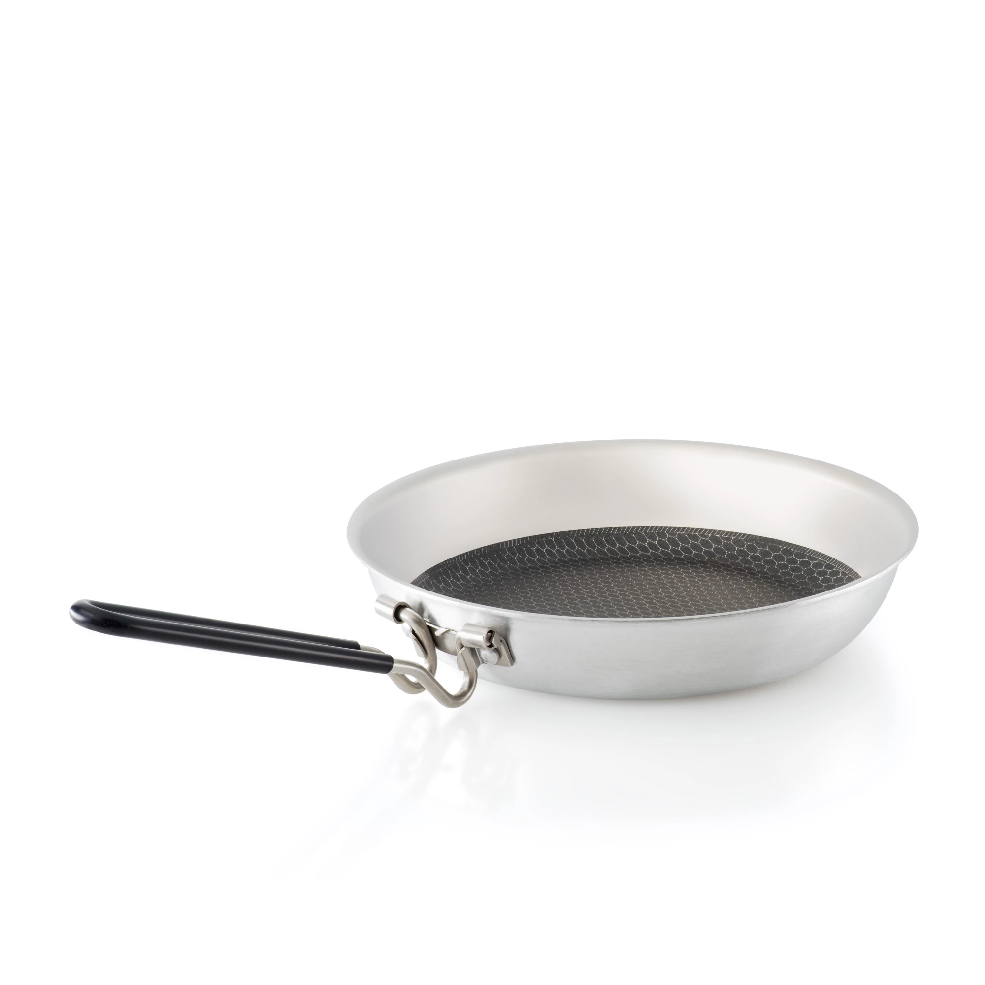The Glacier Stainless 8 inch Frypan from GSI is made of reliabe Glacier Stainlessβ’ premium 18/8 stainless steel. With a brilliant, rust-proof finish and the strength that only steel can provide, Glacier Stainless is the material of choice for decades of use. And with a heavy-gauge, clad aluminum core, these frypans remain lightweight and quick heating over any heat source, just like the finest gourmet pans. And the laser-etched nonstick surface offers excellent food release and easy cleanup. Of course, our premium 304 (18/8) stainless steel construction is still non-reactive, free of BPA, PFOA and Phthalates- what could be better than that?