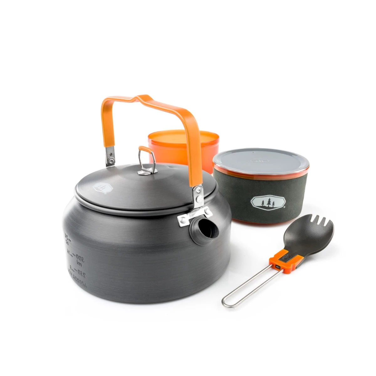 Includes 1.0 L Kettle, 14 fl. oz. Mug w/ Insulated Sleeve, 14 fl. oz. Bowl, Sip-It Top, Folding Foon, Stuff Sack