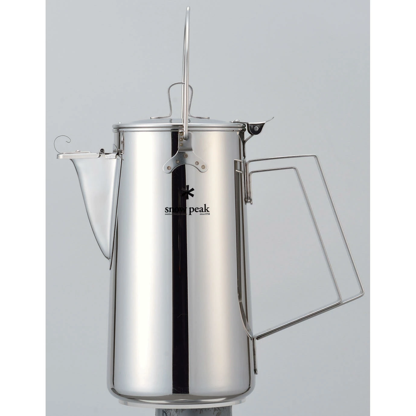 The Classic Kettle 1.8 from Snow Peak is a beautiful 1.8 liter stainless steel camping kettle with hanging loop and handle. Made from durable Japanese stainless steel, the kettle features a sturdy handle and unique details such as a locking spout cover and hanger loop for easy pouring.