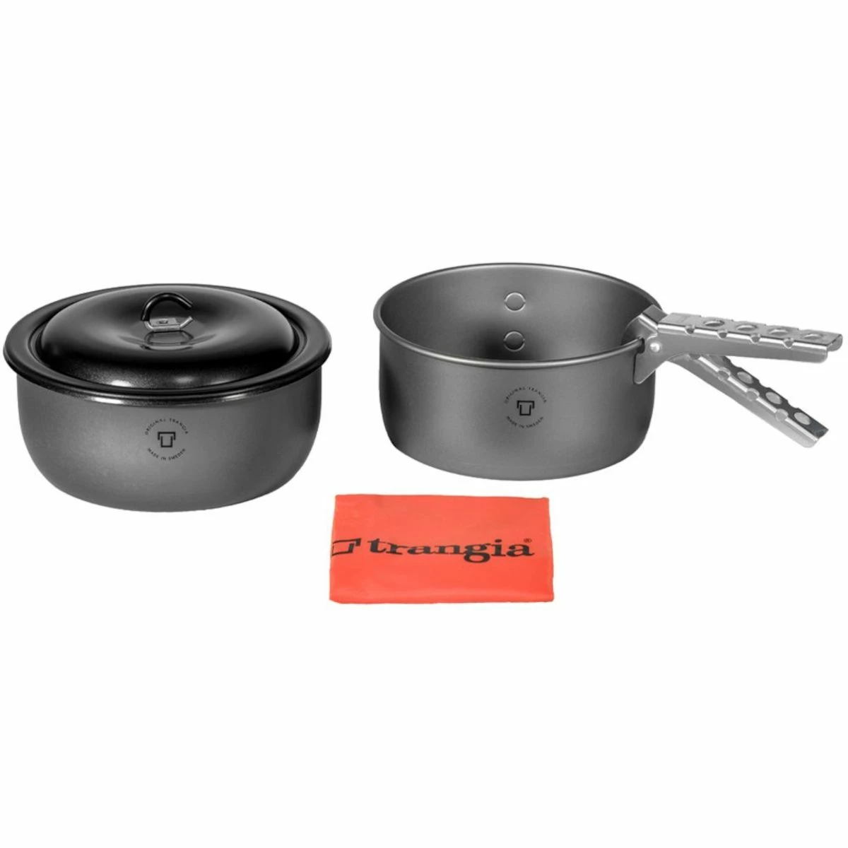 The same cookset as the original Trangia Tundra 2 but featuring ultralight hard anodized aluminum. Includes 1.5 and 1.75 liter saucepans, lid, handle and bag.
