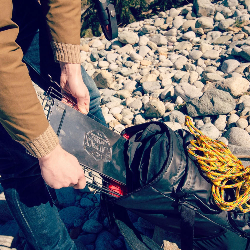 The UCO Flatpack Portable Grill & Firepit packs compactly for easy transportation to the beach, campsite or barbecue. It’s constructed of stainless steel for durability and easy maintenance. After a quick 30 second set-up, you’re ready to go. All you need to do to set up this grill is unfold it and place the grates on top. It has a stable base for safe grilling and the sides serve as windbreaks for grilling in windy conditions. It can also be used as a firepit to help you leave no trace.