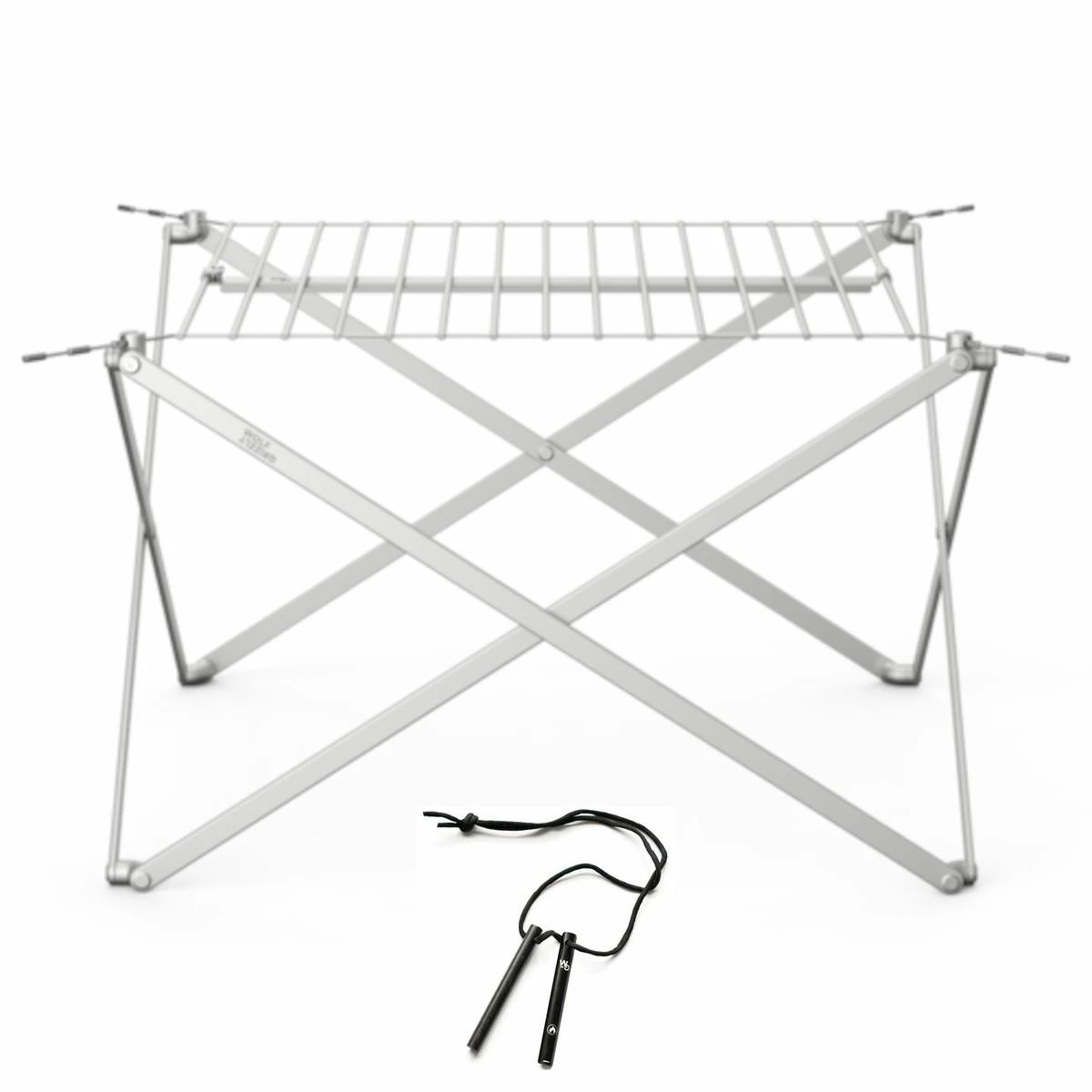 Every component of the Grill — from the frame legs to the bolts and screws — is made out of 304 stainless steel, ensuring that you don’t need to worry about the low melting point of aluminum or the low stability temperatures of non-stick coatings. The frame, rods, and technical stainless steel aircraft cable makes for a sturdy, corrosion-resistant experience that won’t have you wondering whether or not it can support you on your journey.